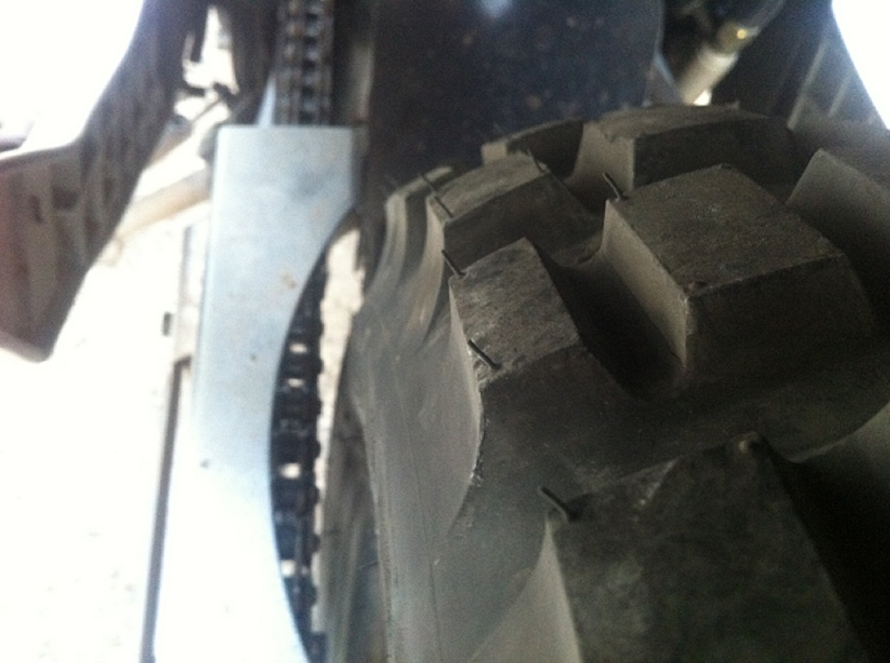 У меня Шинку 705 140/80-17 тоже цепью чиркает. Думаю, что хрен с ней, с резиной. Почиркает и перестанет.
